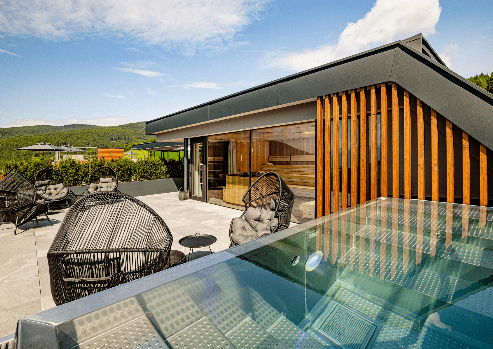 💆♀️🧖♂️ Premium Wellness auf 1.000m²: Entspannen Sie im exklusiven Sonnenberg Spa mit Hallenbad, Panorama-Sauna, Dampfbad und professionellen Beauty-Treatments - pure Erholung mit Bergblick inklusive.